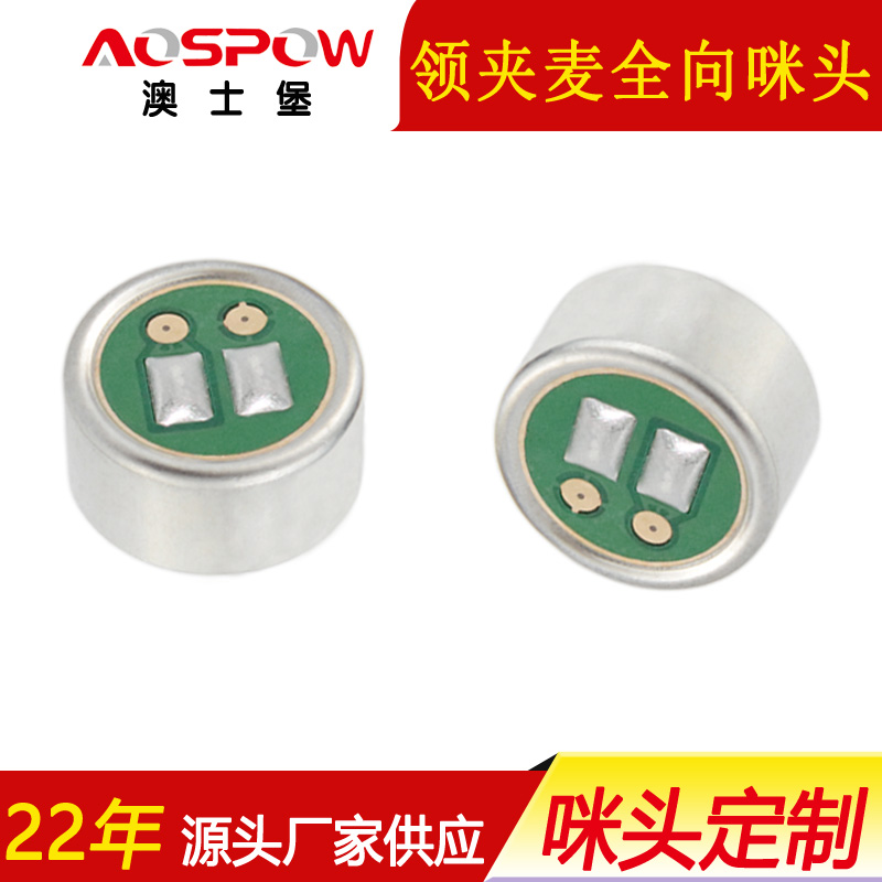 奧仕電子傳聲器咪廠家供應(yīng)領(lǐng)夾麥全指向咪頭、9mm高靈敏咪芯、9745駐極體傳聲器內(nèi)置電容電阻,具有消噪降噪抗干擾等效果,適用于領(lǐng)夾麥等拾音器產(chǎn)品。
